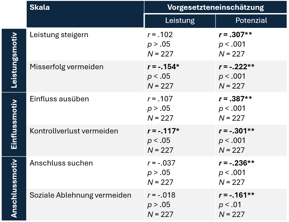 Validierungsstudie von Motiven zur Prädikation von Führungsleistung und -erfolg